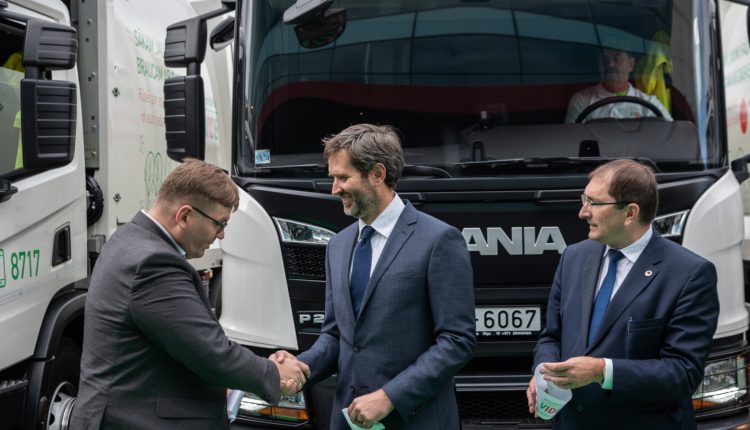 Pat divi ministri vakar, 7. septembrī bija ieradušies apsveikt un uzslavēt atkritumu apsaimniekošanas uzņēmumu “Eco Baltia vide” par to, ka uzņēmums nopircis piecas atkritumu savākšanas mašīnas, kas darbojas ar saspiesto dabasgāzi (CNG).