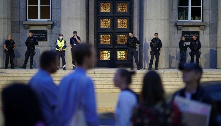 Teritorijā bija vairākas policijas ekipāžas, un policisti bija izkārtojušies gan uz braucamās daļas, gan uz Ministru kabineta ēkas kāpnēm.